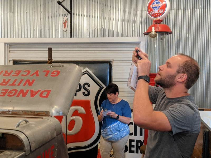 One great example came when three groups took a photo of the same thing. It was the lineup of old oil company signs next to an oil machine of some sort.