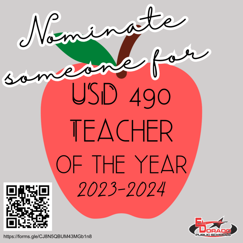 USD 490 is now accepting nominations for the 2023-2024 District Teacher of the Year.