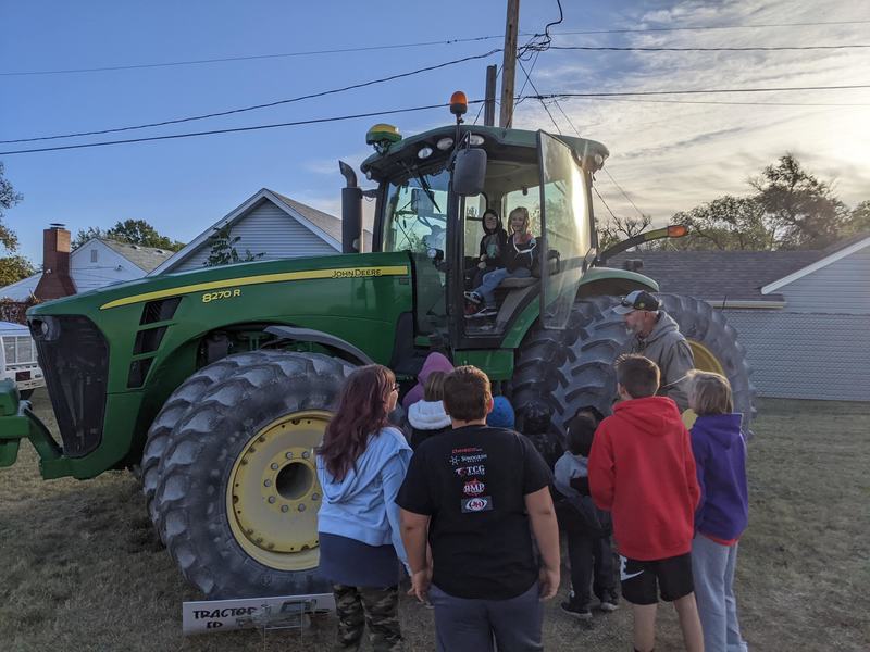 Mrs. Varner’s husband talked to students about farm equipment and allowed students to climb into the driver’s seat of a big tractor.