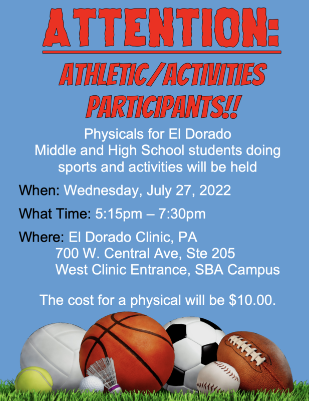 This is open to all middle school and high school students interested in participating in sports or activities requiring a physical. Even if you don't need it until later in the year, you can still get it now so it already on file with the school. Remember, it's better to have it and not need it than need it and not have it.