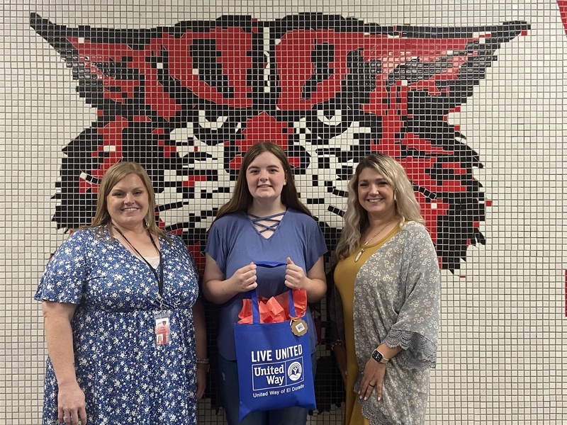 Pictured: Erin Nichols, EHS Principal; Annabelle Wise; Tiffani Herrman, Director of the United Way of El Dorado